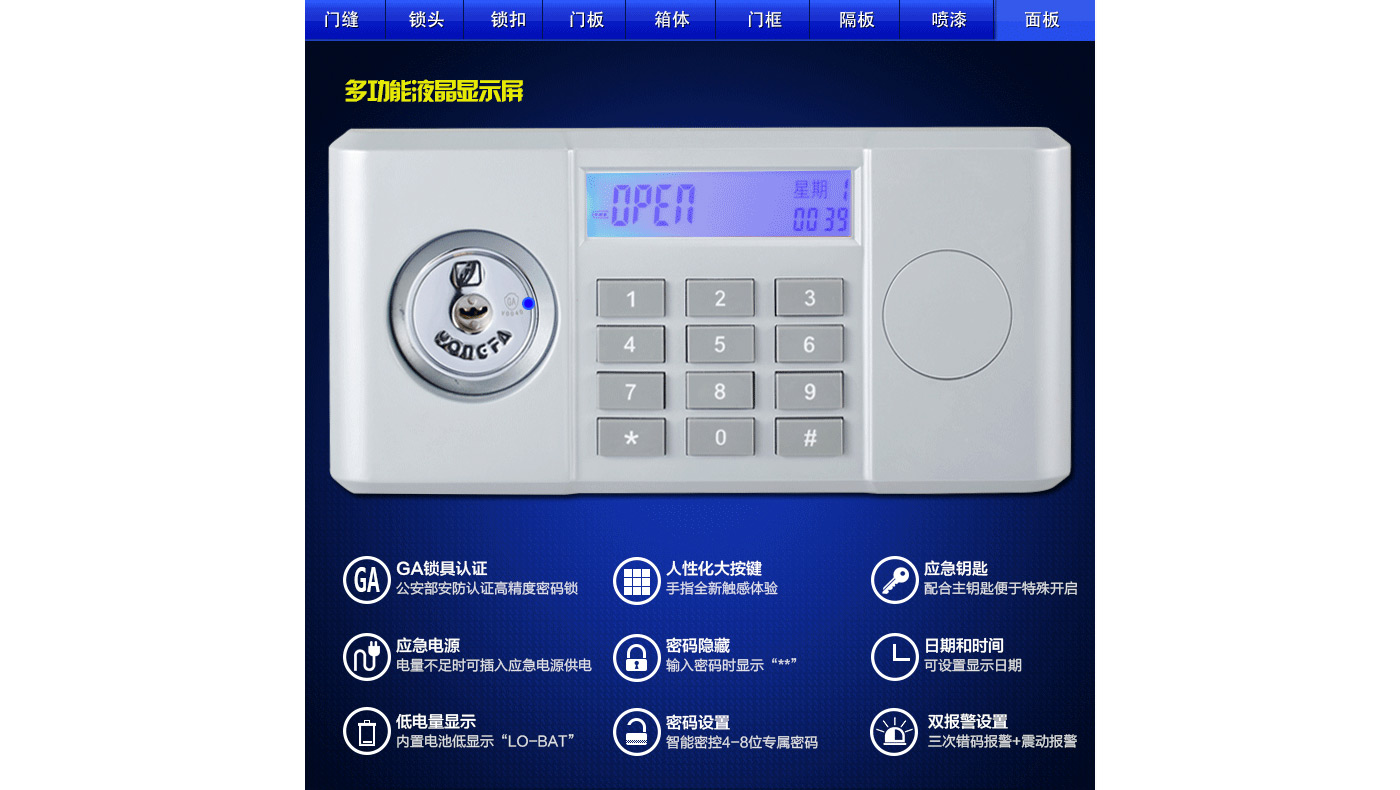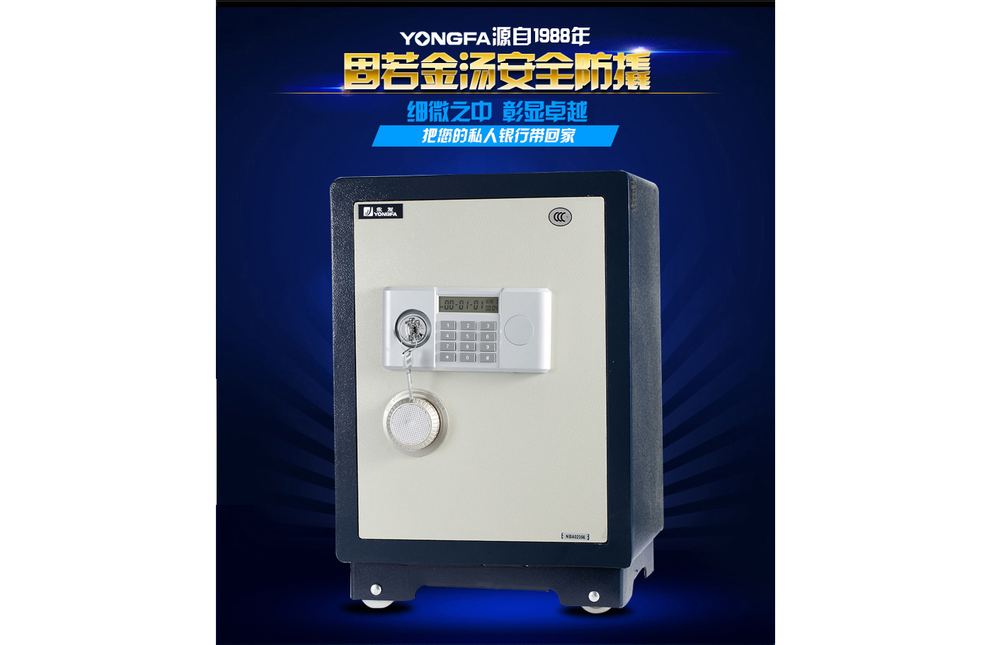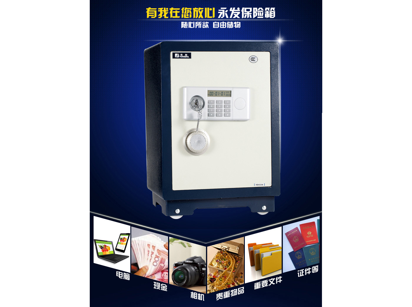 永發經典電子系列3C認證保險箱D-50BL3C尺寸說明:570高*390寬*330深mm(含底座) 重量:62kg