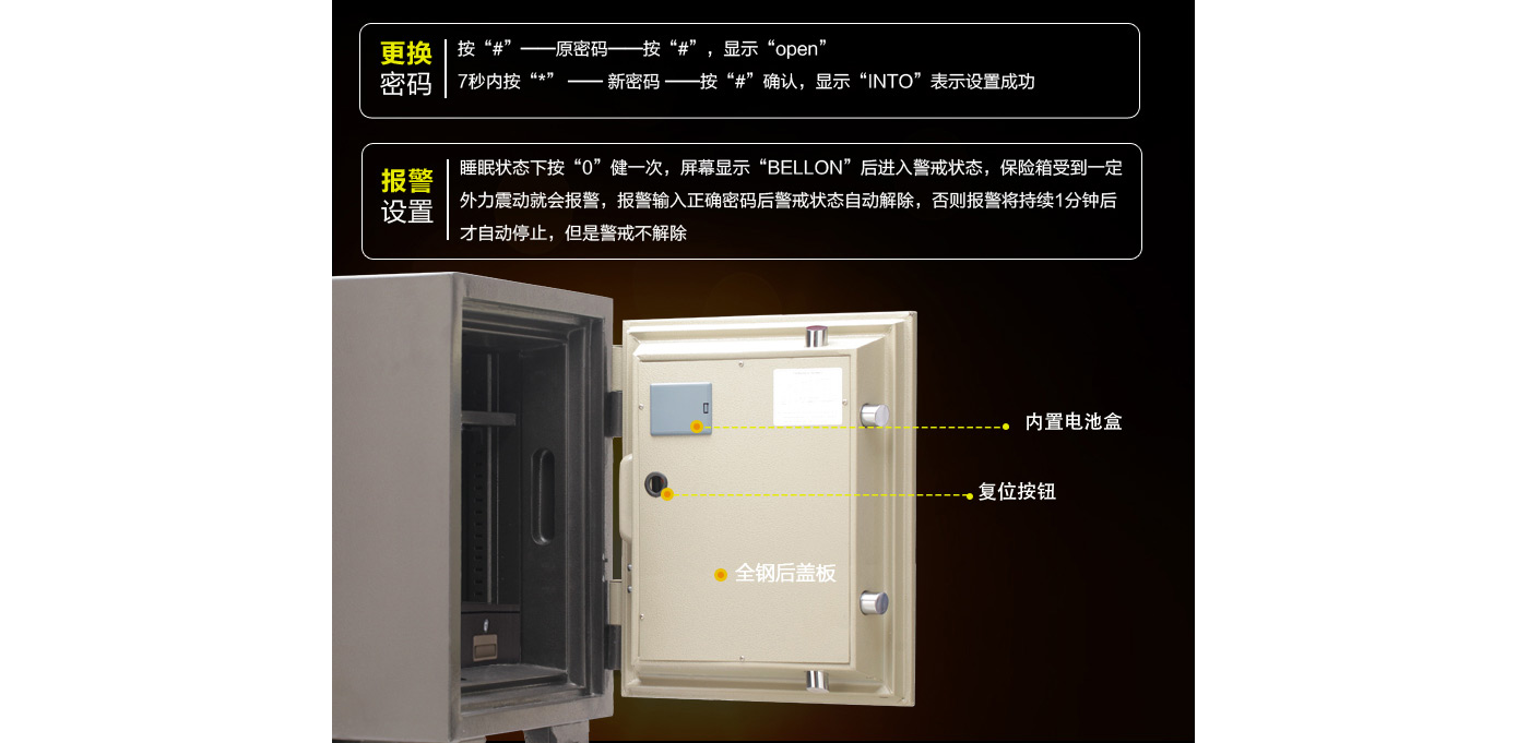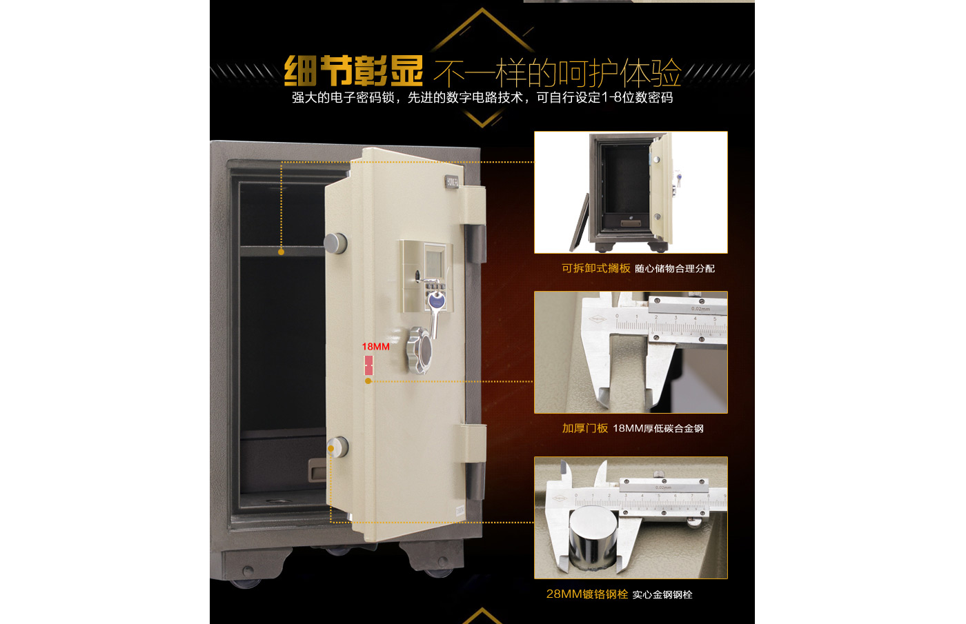 永發電子防火柜YB-700E尺寸說明:770高*500寬*530深mm(含底座) 重量:115kg