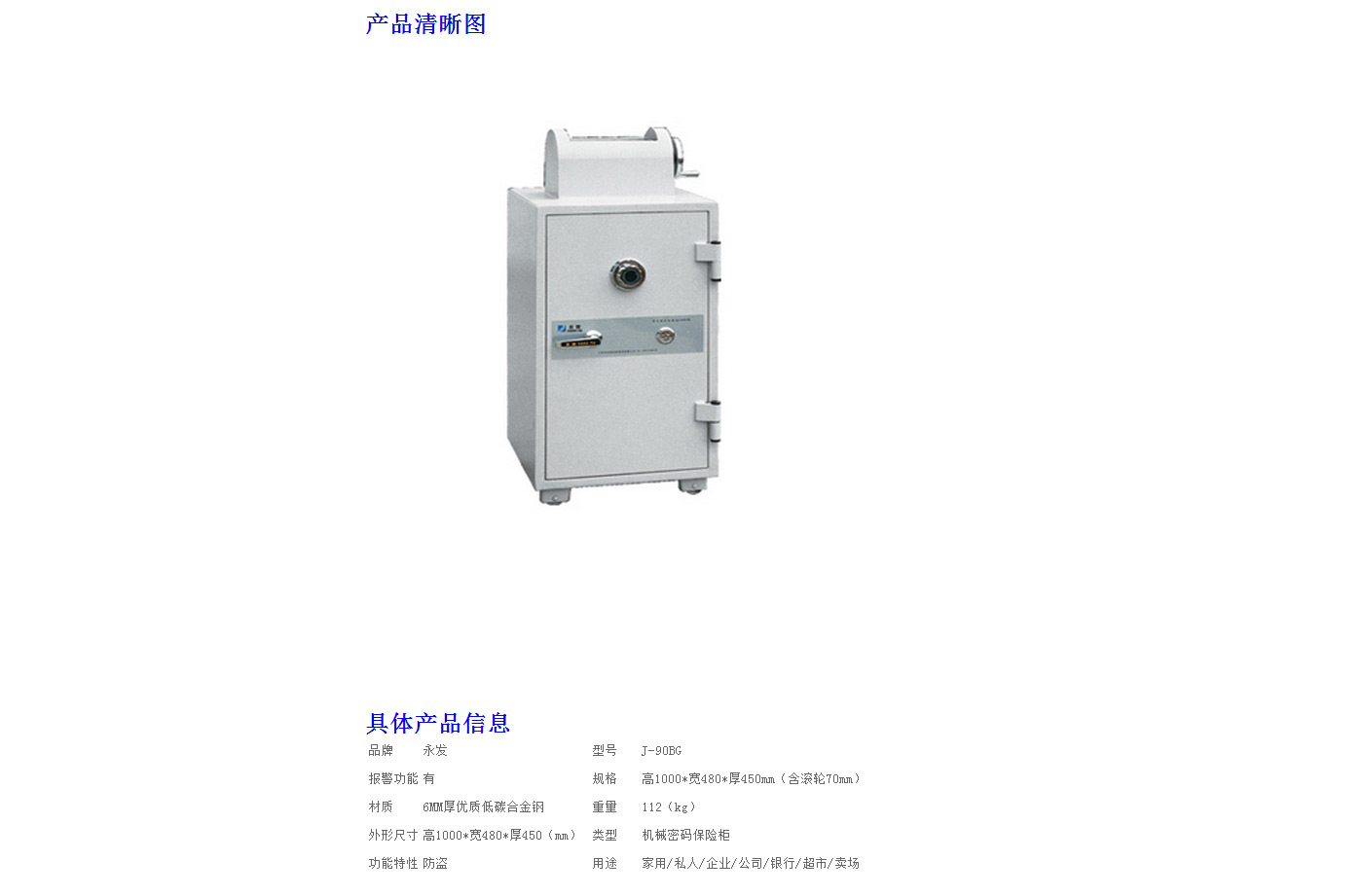 永發機械式投幣柜J-90BG尺寸說明:1000高*480寬*450深mm(含底座) 重量:112kg