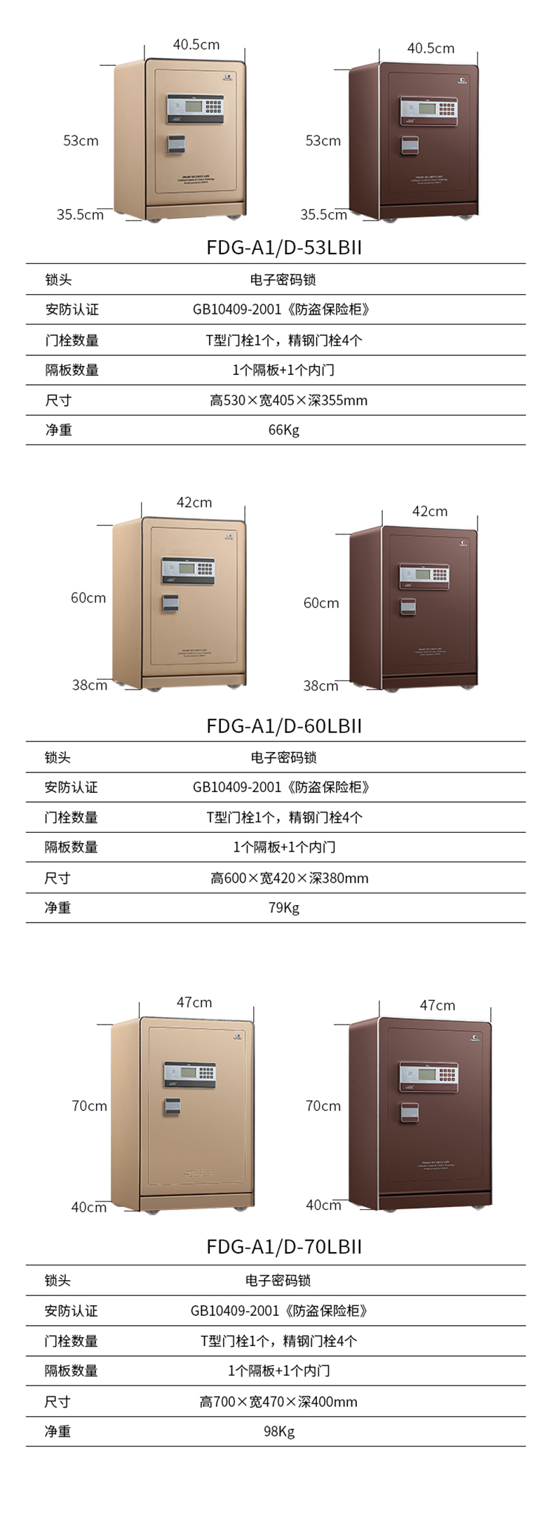 卡嘜樂寶電子系列3C認(rèn)證保險(xiǎn)箱D-45LBII尺寸說明:450高*400寬*350深mm(含底座) 重量:43.5kg