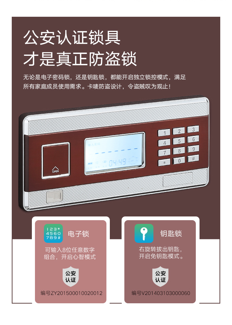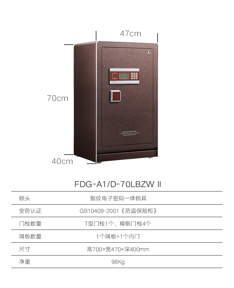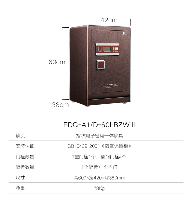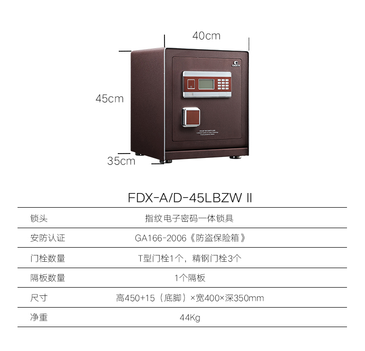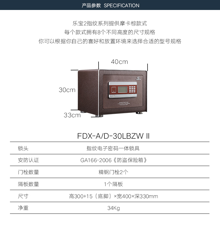 卡嘜樂寶指紋+電子密碼系列3C認證保險箱D-30LBZWII尺寸說明:300高*400寬*330深mm(含底座) 重量:33.5kg