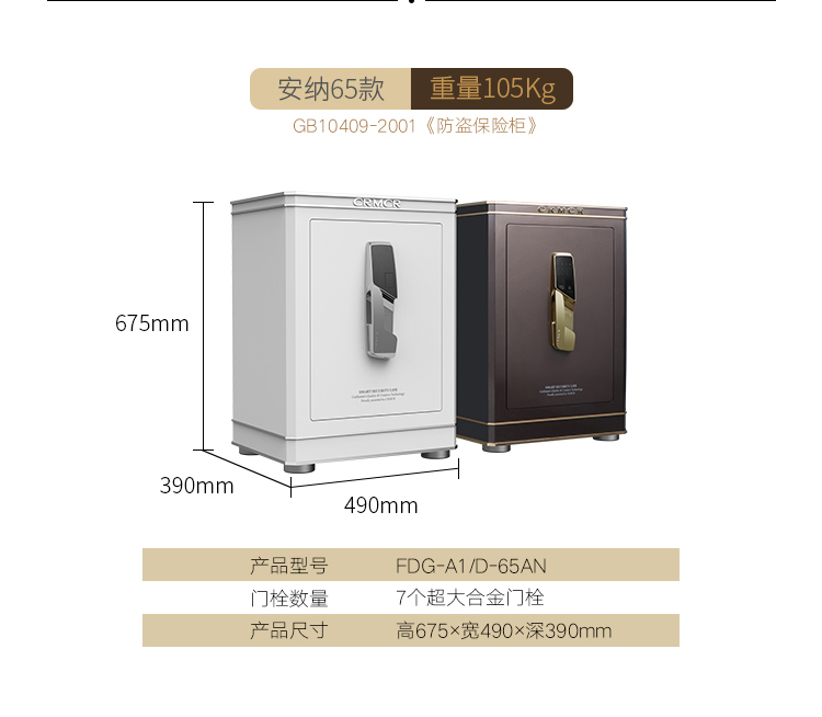 卡嘜安納指紋+電子密碼系列3C認證保險箱D-65AN 尺寸說明:650高*485寬*390深mm(含底座) 重量:100kg
